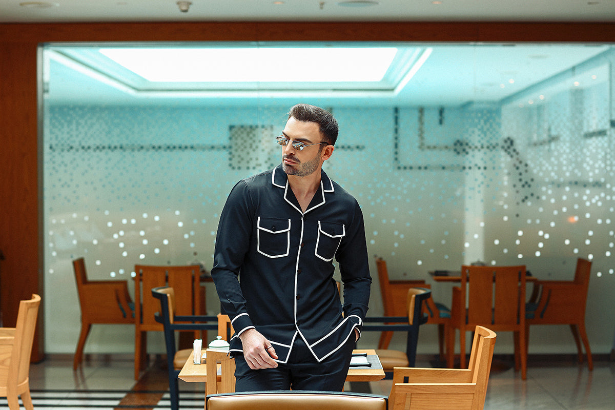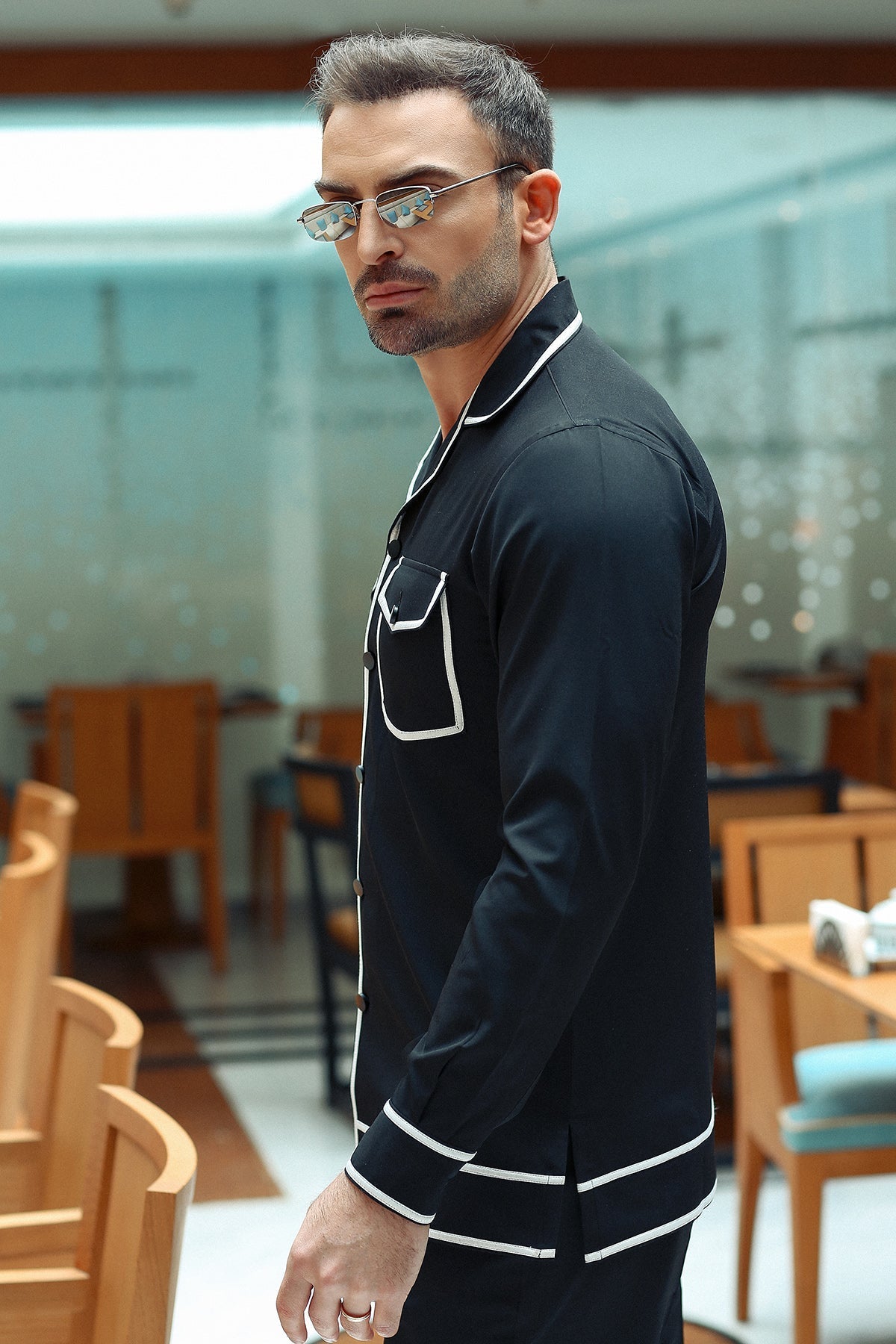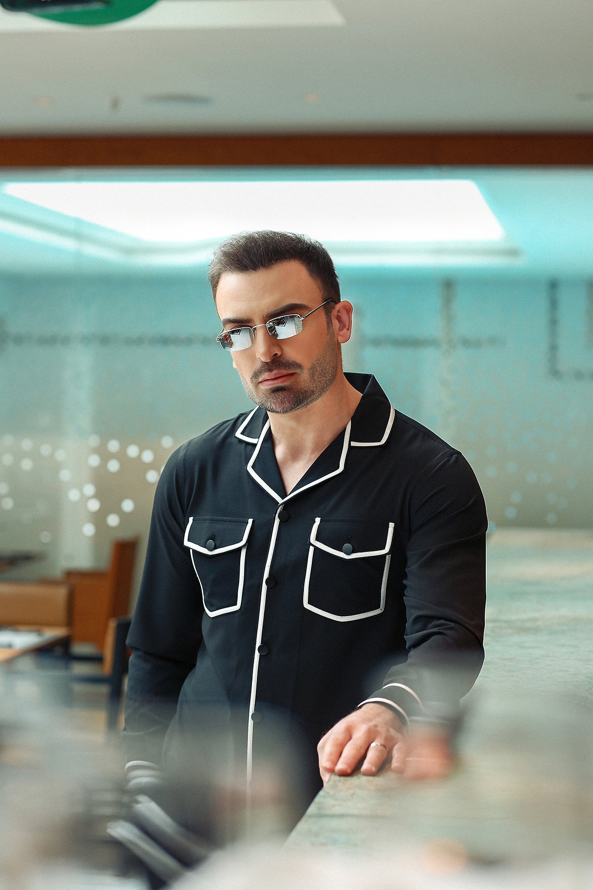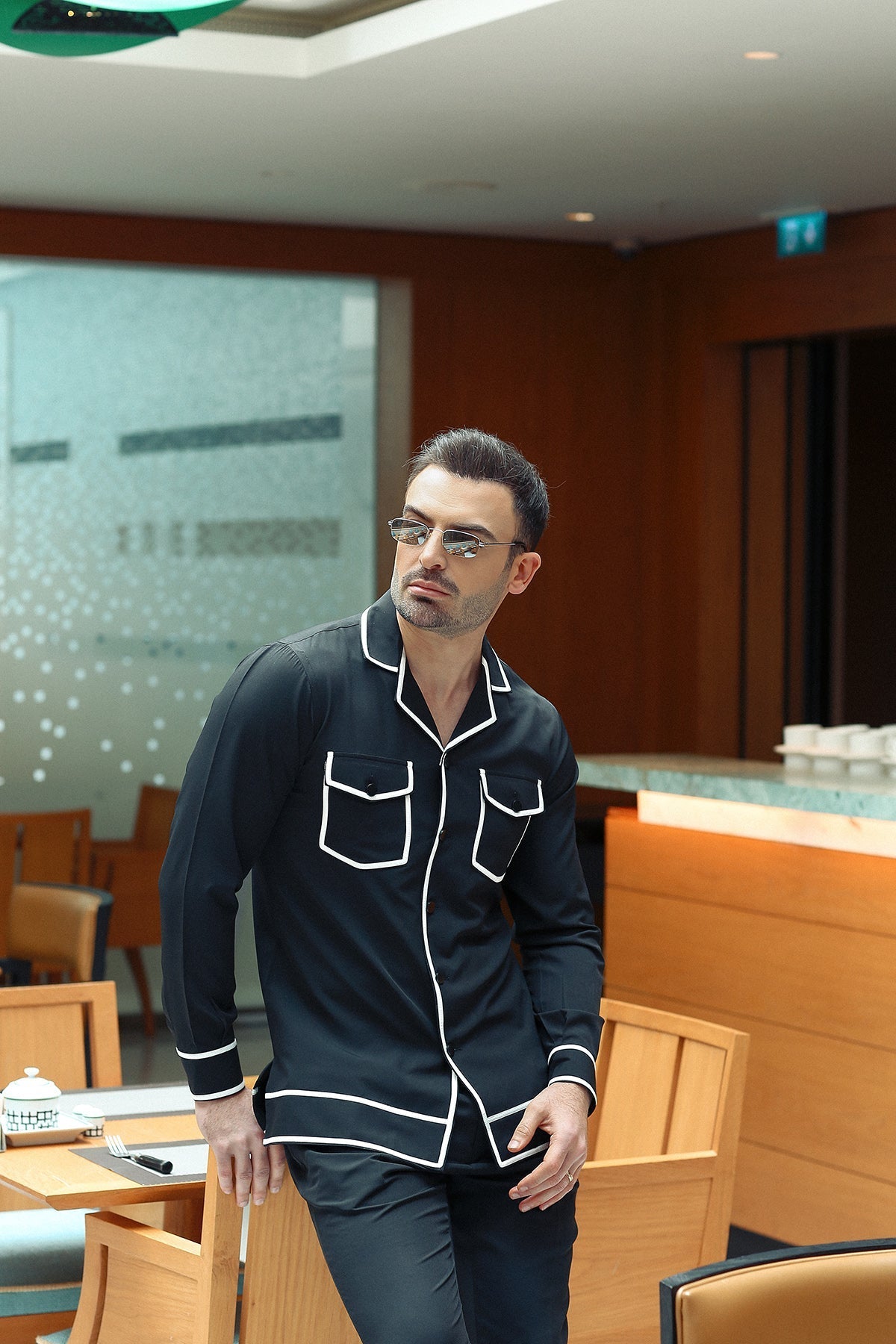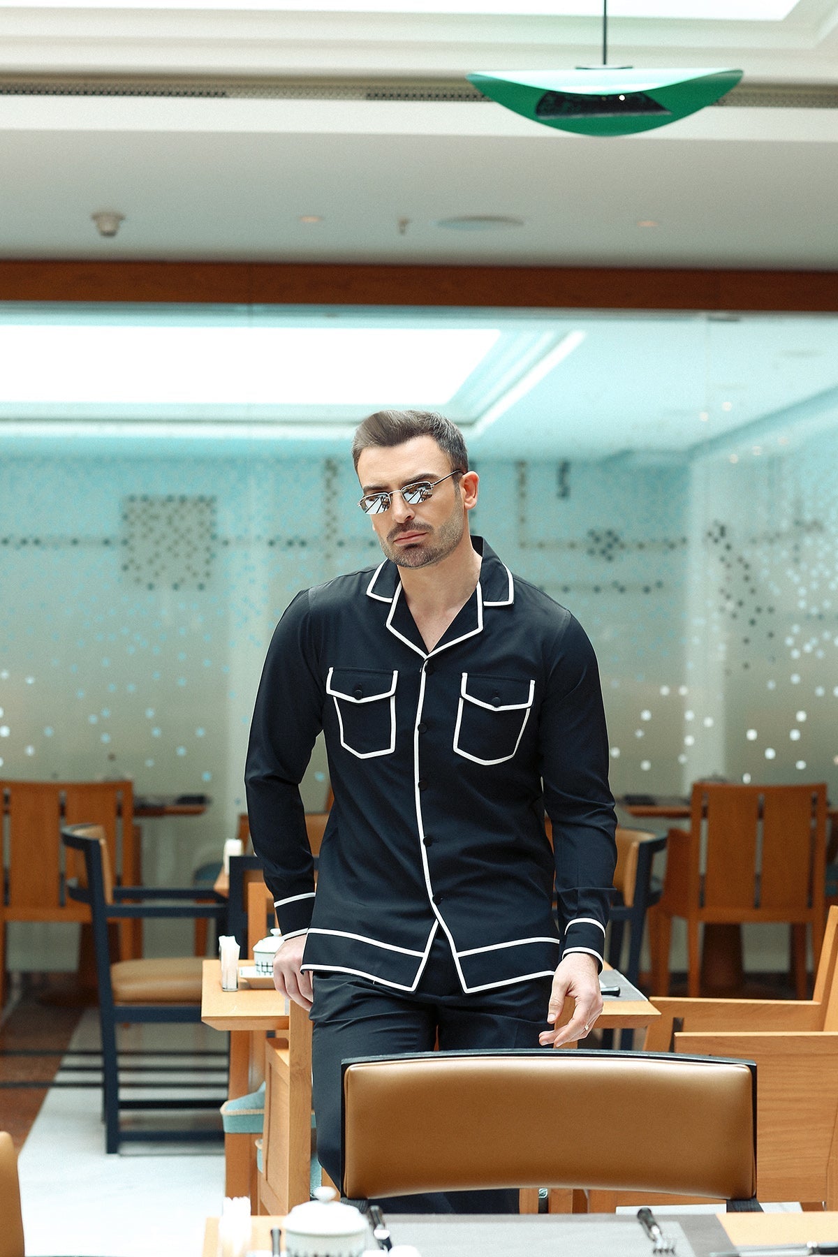 Experience the perfect blend of modern style and sophistication with our Modern Men's Suit. This sleek ensemble features a contrast super fine binding detail, metal buttons, and a stylish camp collar.