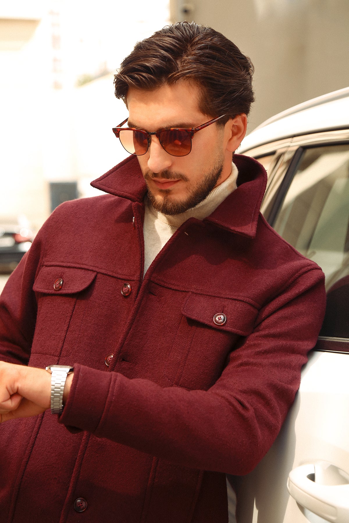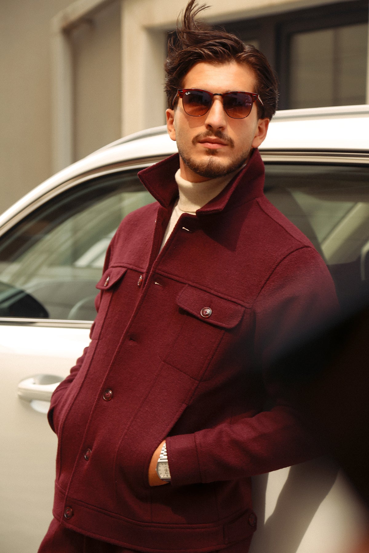 - Wool blend fabric offering warmth with a smooth, structured feel