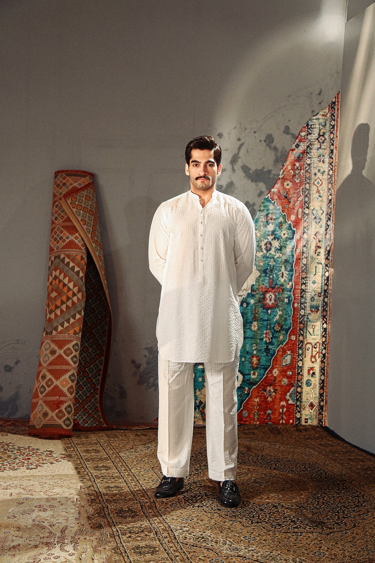 The special Donny weave adds texture and subtle pattern to the fabric, giving the kurta a distinctive, refined look while the soft cotton base ensures breathability and all-day comfort. The mid-thigh length provides a balanced silhouette, perfect for both formal and semi-formal occasions.