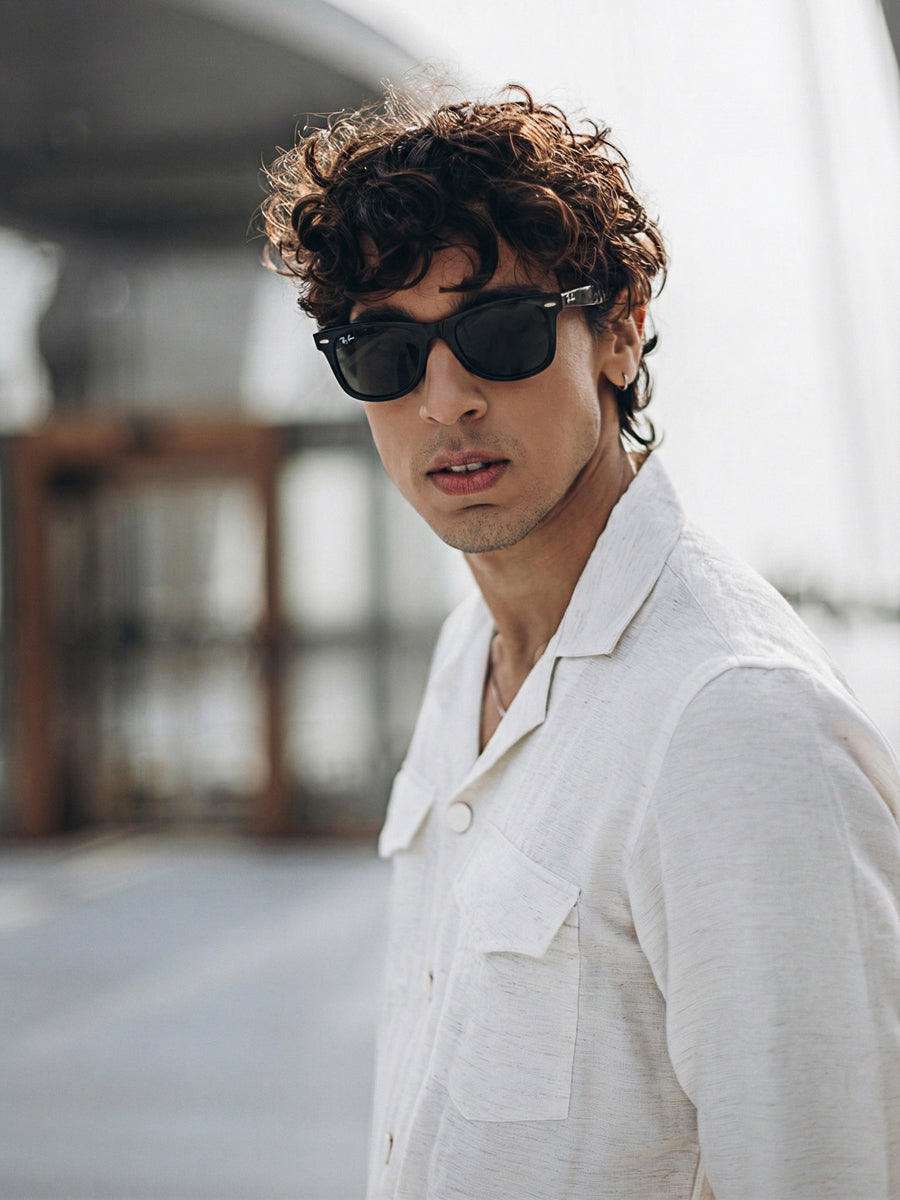 Finished with premium metal buttons and functional patch pockets, the design blends modern utility with elevated tailoring. The structured yet easy drape makes it ideal for smart casual wear, evening gatherings, and contemporary styling.